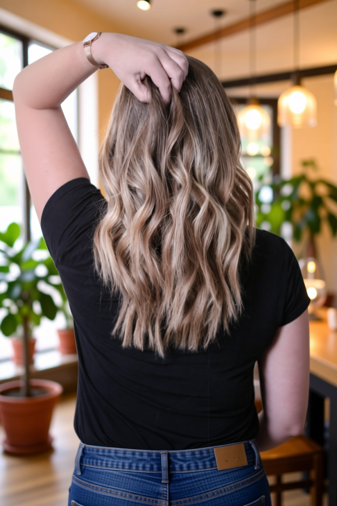 To create soft waves you can use a curling wand or braid your hairs loosely while it is slightly damp and leave it overnight. In the morning open the braids and gently separate the waves with your fingers. A light mist of spray can help hold the shape while keeping it natural. Soft beach waves are perfect when you want comfort style and a touch of effortless beauty in your everyday look.