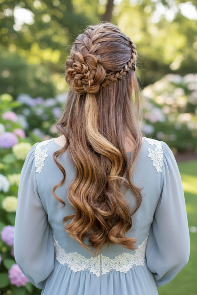 Half up half down styles are timeless. They allow you to enjoy loose hair while keeping it controlled. You can add soft curls or simple waves to make it more special. A long braid over the shoulder looks classic and feminine. A fishtail braid gives a unique and detailed touch.