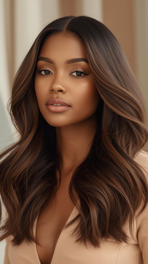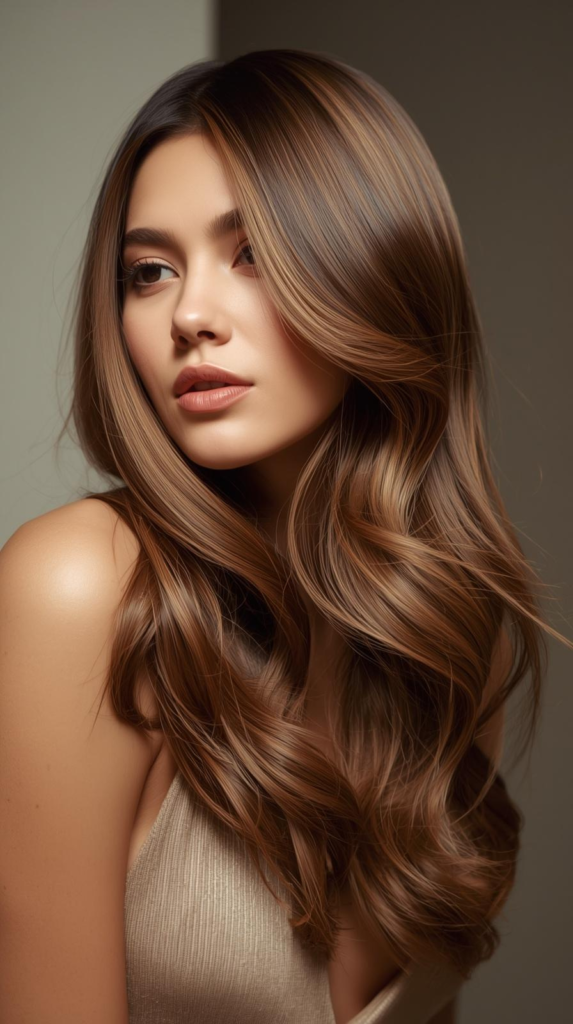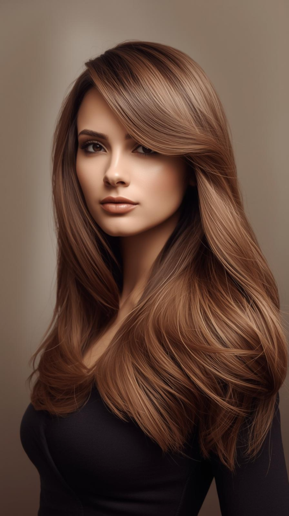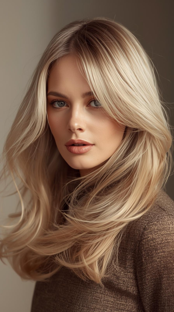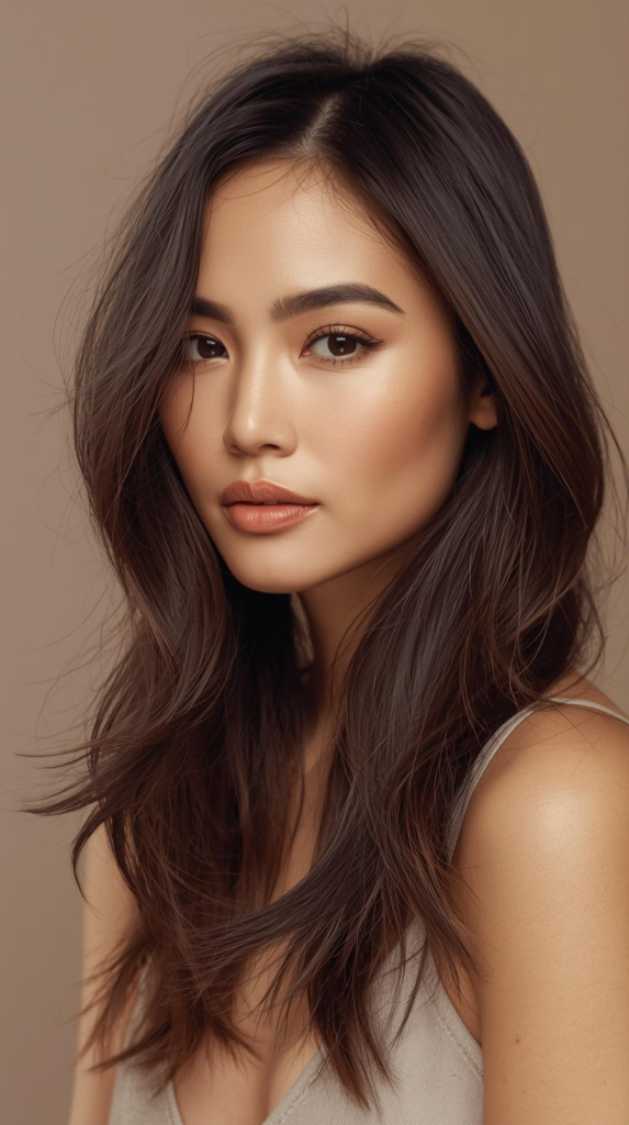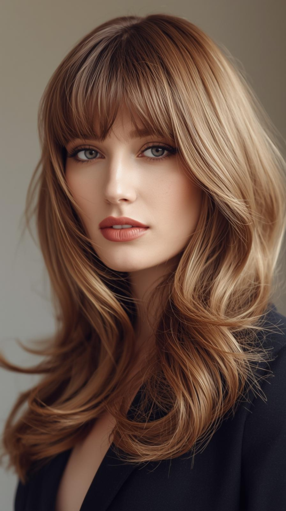 The shorter layers on top give gentle lift. The longer layers keep the length smooth and flowing. This hairstyle works well on medium and long hairs. You can keep it straight for a clean look. You can also add soft waves for extra texture. It is easy to style and gives a fresh and trendy appearance.