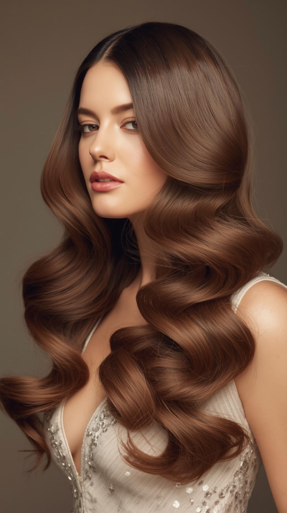 Glam butterfly blowout is a bold and beautiful hairstyle. The hair has soft butterfly layers that add shape and volume. A blowout makes the hair look big and bouncy. The top layers give lift and height. The longer layers flow smoothly around the shoulders. The ends are softly curved which adds movement. This style looks shiny and full of life. It is perfect for parties and special events. It works best on medium and long hair. You can use a round brush and dryer to create this look. It gives a glamorous and confident appearance.